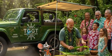 Ready to trade screen time for green time? Lace up your sneakers and join Captain Craig and Huber for a wild, wonder-filled hike through Oahu’s lush, tropical trails! As you wander, you’ll uncover hidden waterfalls, hear local legends, and maybe even spot a gecko showing off its dance moves.At the end of your adventure, you’ll arrive at a dreamy picnic hideaway where Captain Craig rolls out a gourmet feast—think juicy island fruits, artisan cheeses, and his legendary signature bites (presented with tweezers, of course). Huber keeps the fun rolling with picnic games, taste tests, and a few surprise treats just the right size for mouse paws.And just when you think it can’t get any better, it’s time to kick off your shoes and dip your tired feet in a soothing, cool foot bath—tropical style! Relax, recharge, and soak in the island vibes as you swap stories and savor the moment.What’s included: